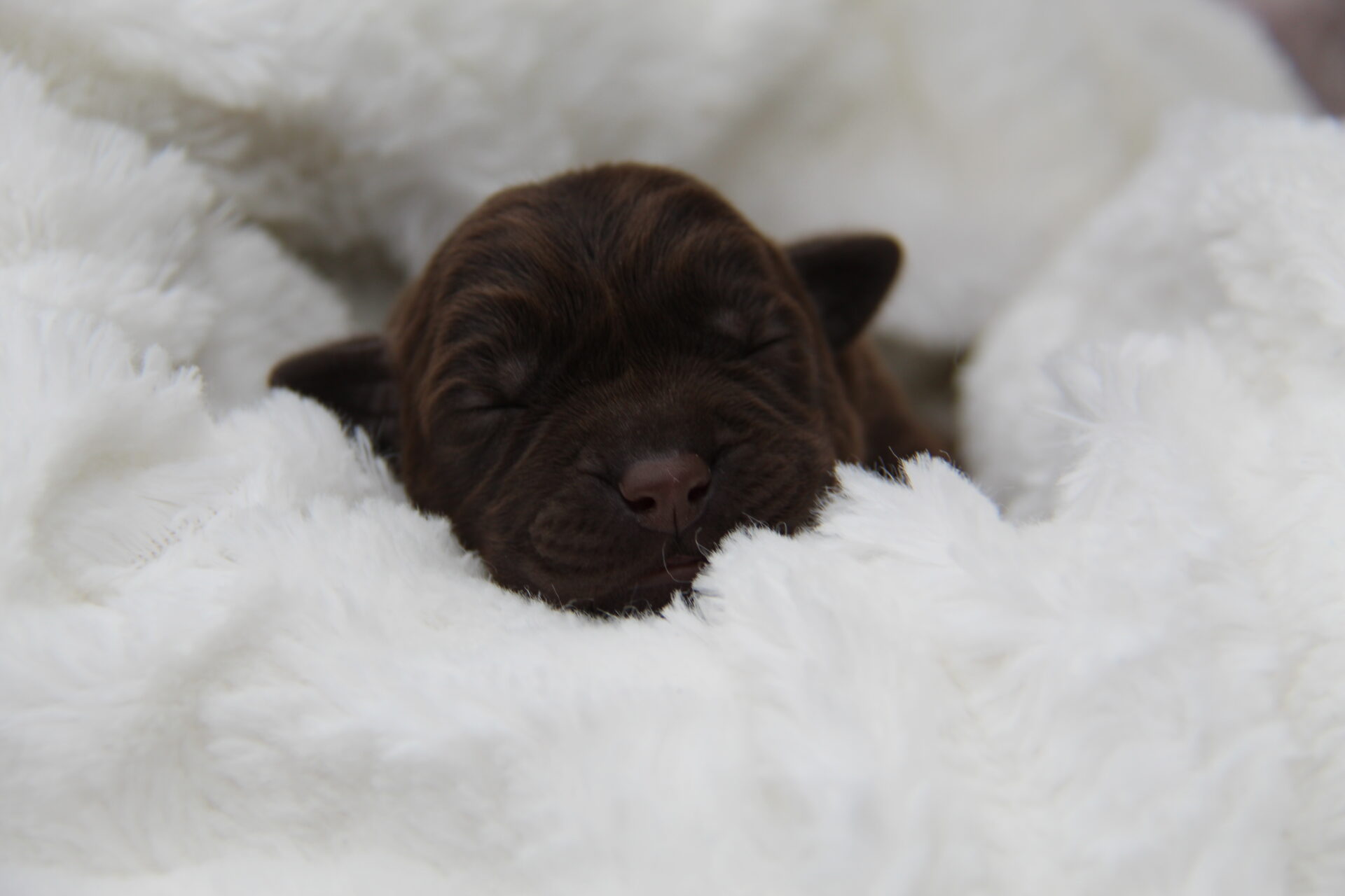 After that we had a 45 minute wait till Meeko, another chocolate male, was finally born. We knew we were in for a long night at this rate. We didn’t know how many pups she’d have, but it was obvious this had hardly made a dent. Milo, a fox red male came about 15 minutes later. Much better. Maybe we will be able to get some sleep tonight.